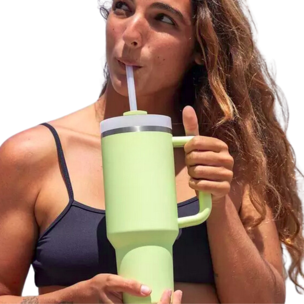 Copo Térmico em Aço Inox LISO 1200 ML Com Tampa e Canudo AN-033