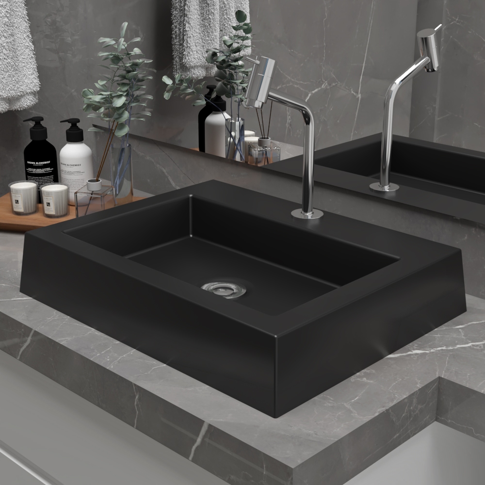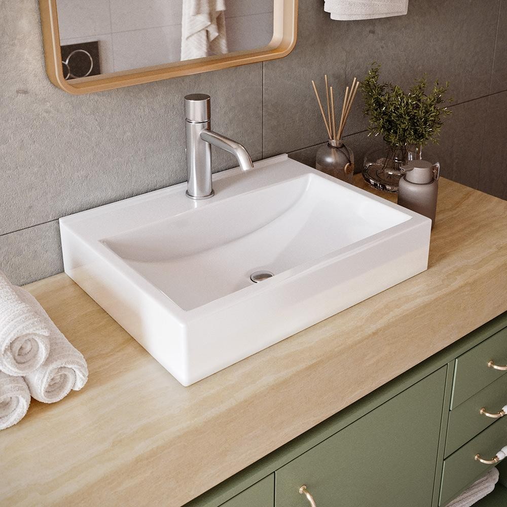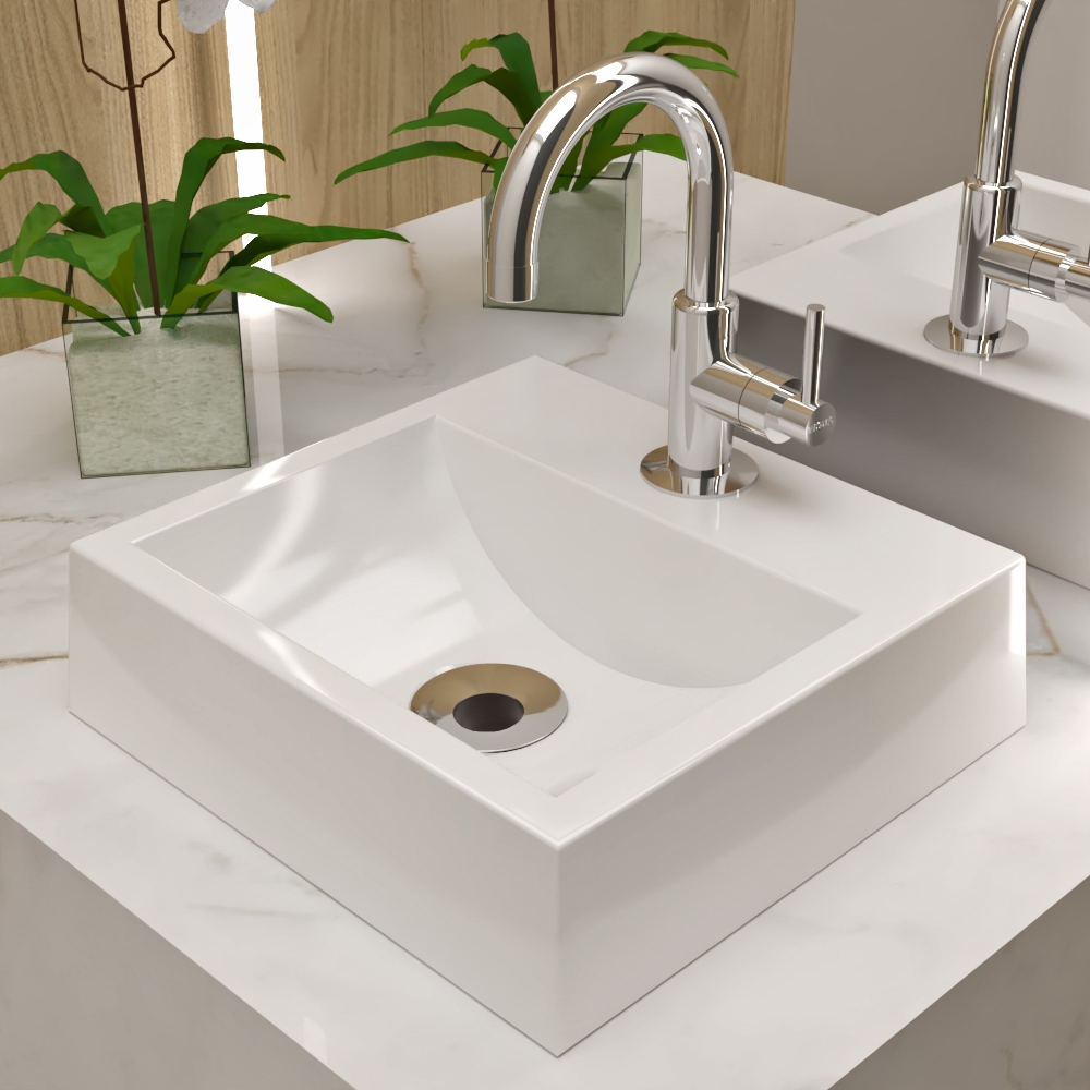 Cuba de Apoio Pia Para Banheiro Lavabo Retangular Diamante Mármore Sintético 48 x 47cm - BELTEMPO