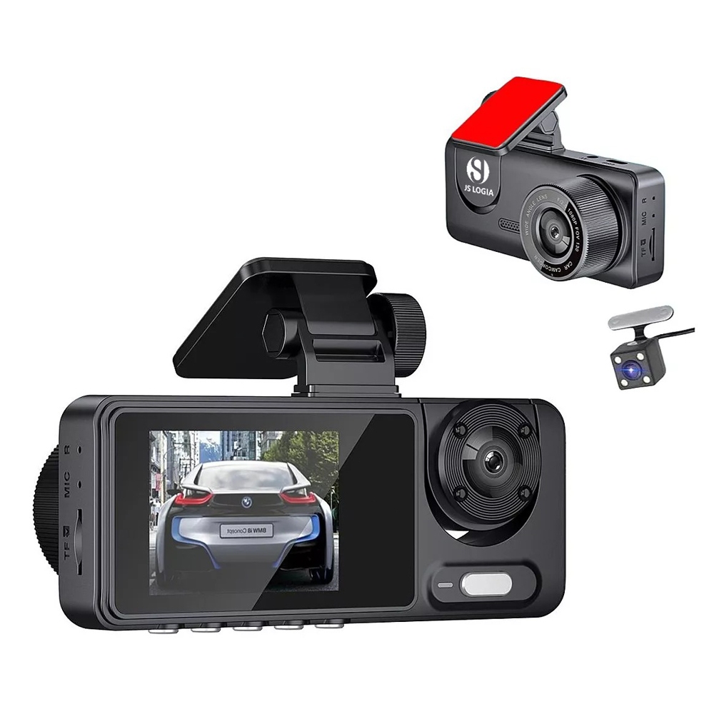 Câmera Dashcam HD 1080P 3-Lentes Dentro Do Veículo Dash Cam De Três Vias Gravador De Vídeo DVRs