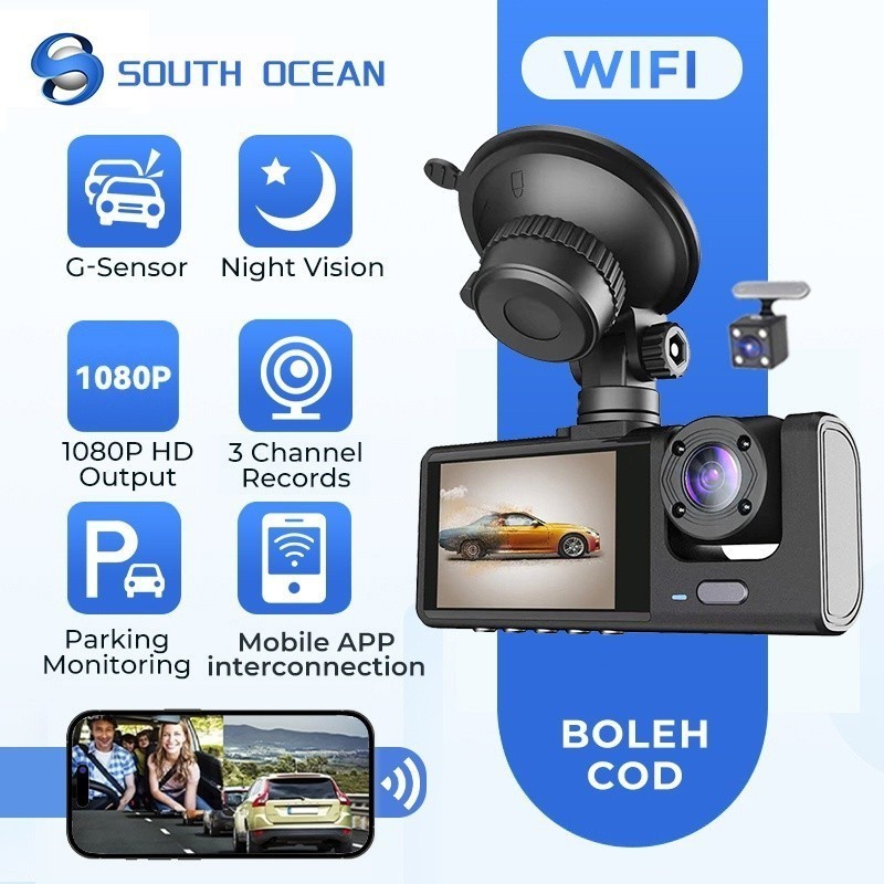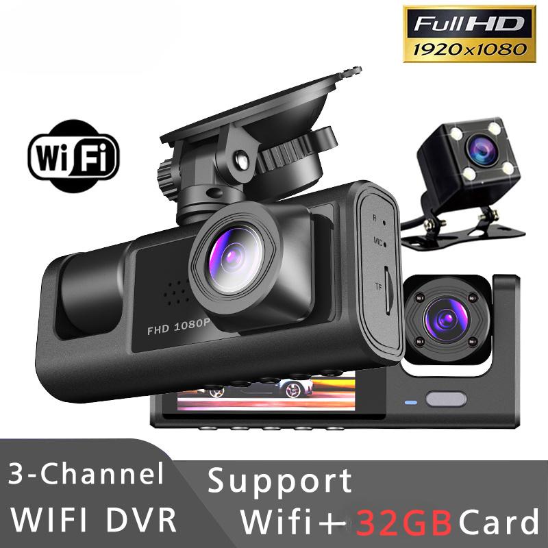 3 Lentes De Câmera Carro HD 1080P 24h Monitor De Estacionamento DVR Dash Cam Camara De Vídeo Gravador Dashcam Wifi