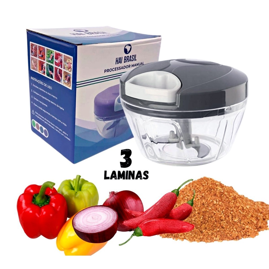 Multi Processador Triturador de Alimentos Manual Premium 3 Lâminas Inox Original