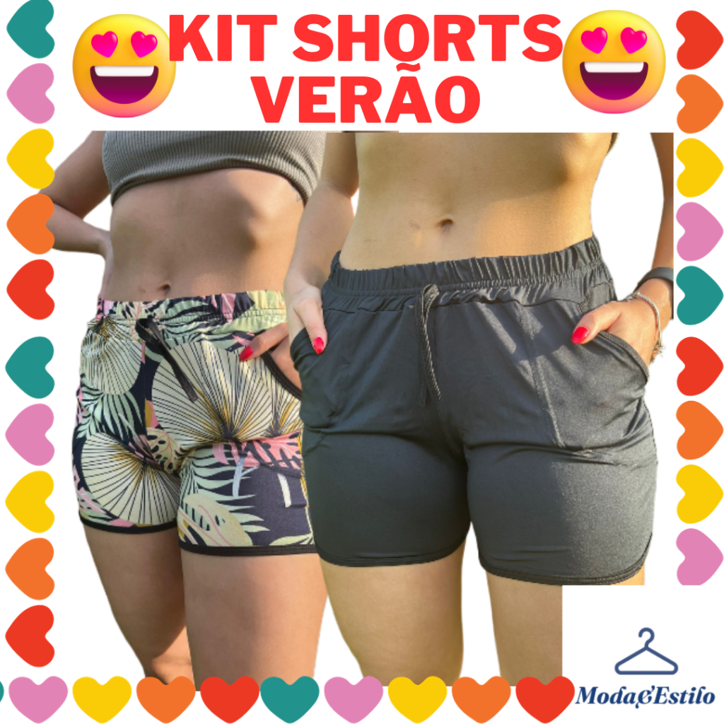 KIT C/ 2 Shortinho Curto Moda Verão Com Bolso Feminino Estampada Soltinho Super Confortavel Plus Size