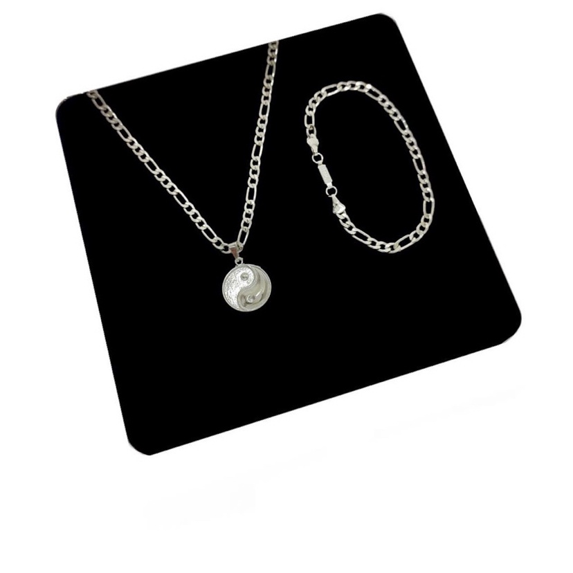 Kit masculino YIG -YANG Corrente Banhada a Prata 925 + pulseira 3x1