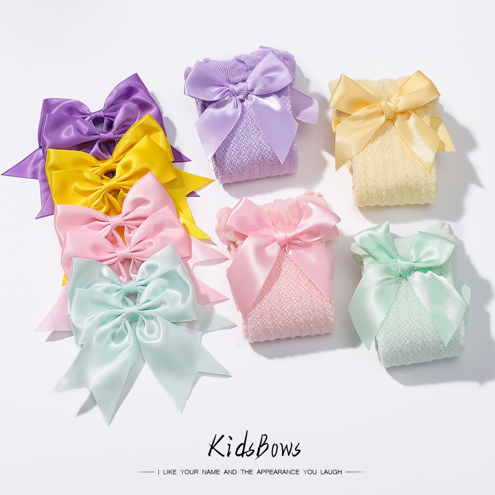 KidsBows Recém-Nascido Feito A Mão Meias De Joelho De Cor Sólida Para Meninas De 0-3 Anos De Idade Laços De Fita Conjunto De Cabelo Acessórios