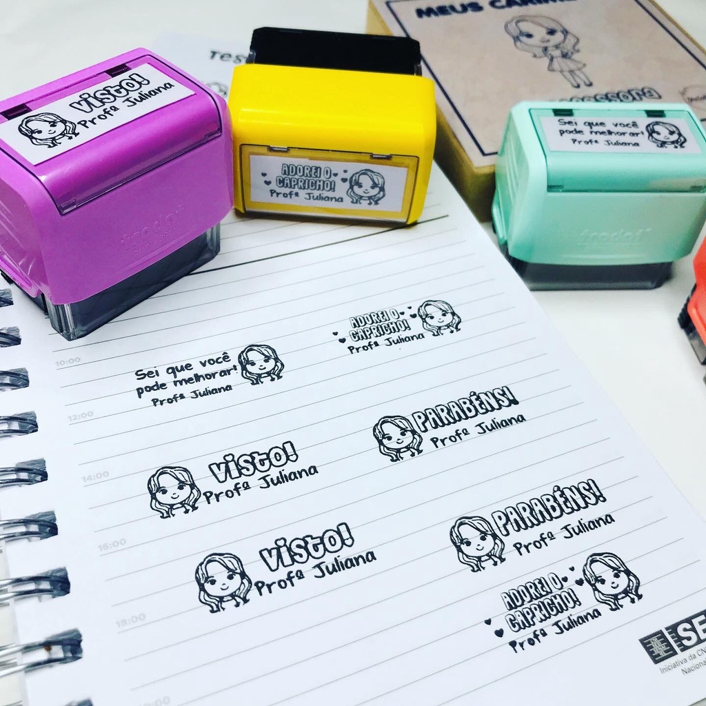 Kit Carimbo Pedagógico para Professora com 04 Carimbos Automáticos - LEIA A DESCRIÇÃO!