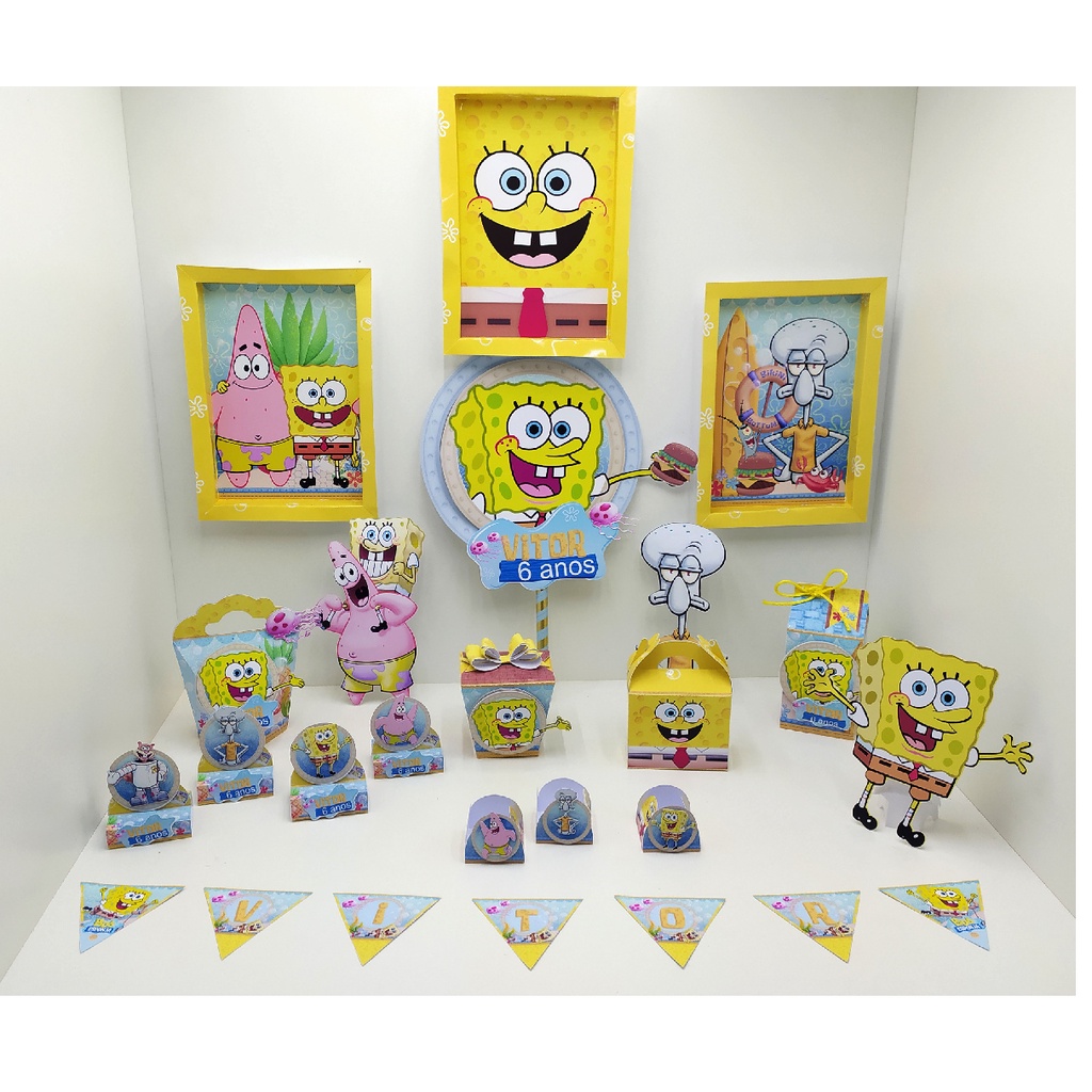 KIT festa - Kit só um Bolinho BOB ESPONJA - Papel Fotográfico (LEIA A DESCRIÇÃO)