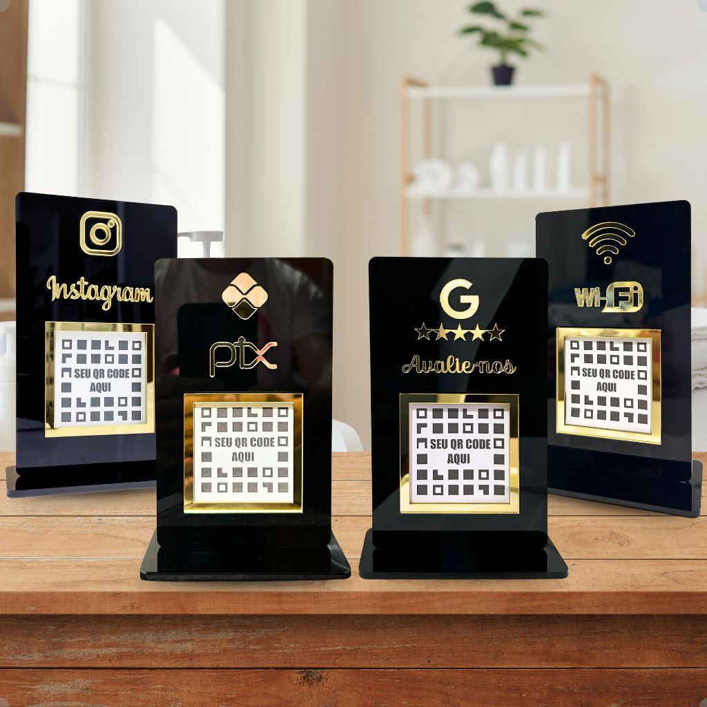 Placa Display 02 QR Code Pix Wifi Instagram Acrilico E Mdf