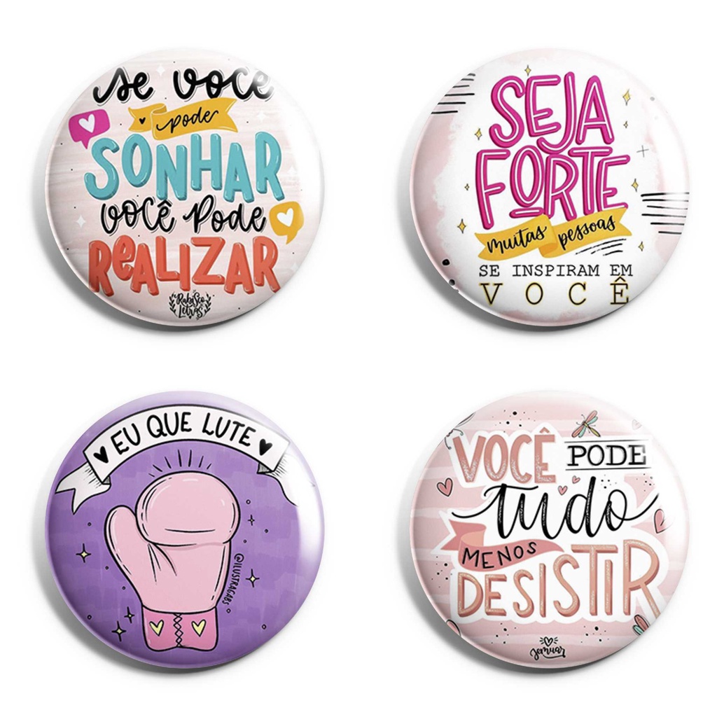 Kit com 4 Botton Personalizado Frases Motivacionais Motivacional 4,4cm Para Roupas e Mochilas
