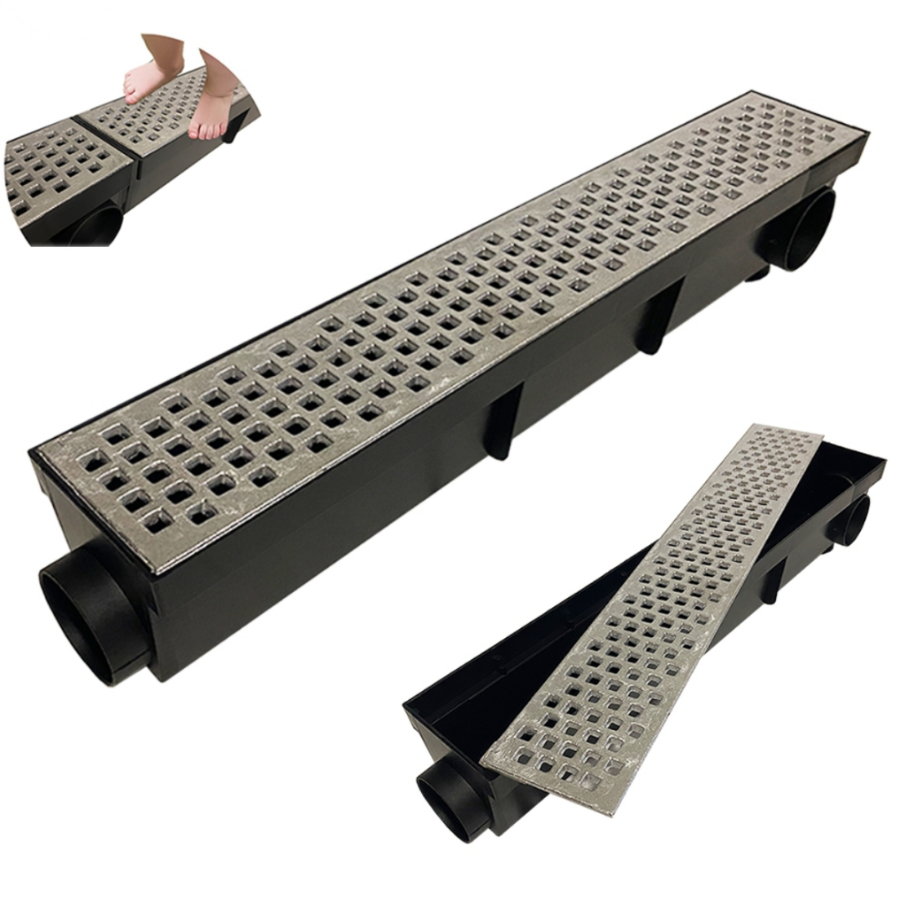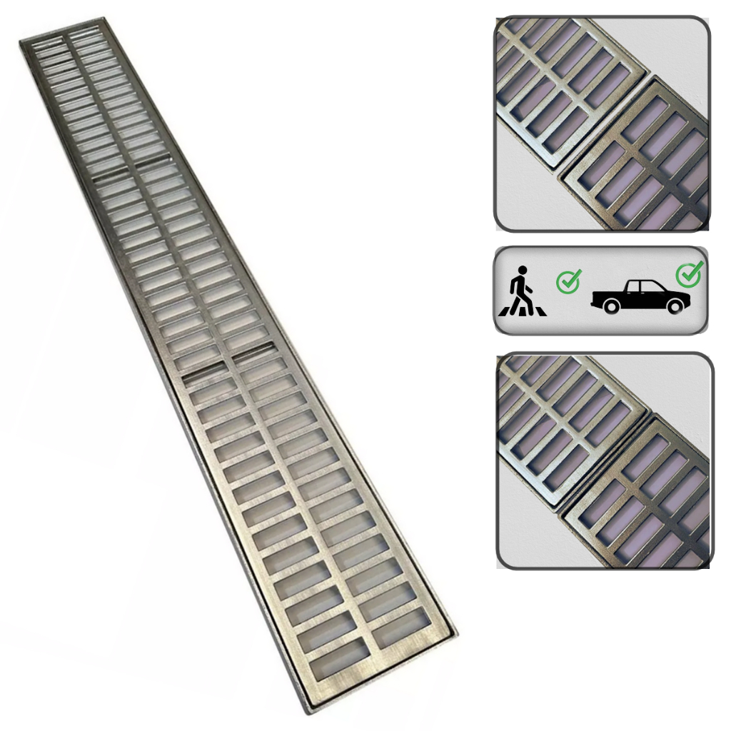 ralo linear 10x100cm grelha e suporte em alumínio para área externa, piscina e garagem ( 2 peças 10x50cm )