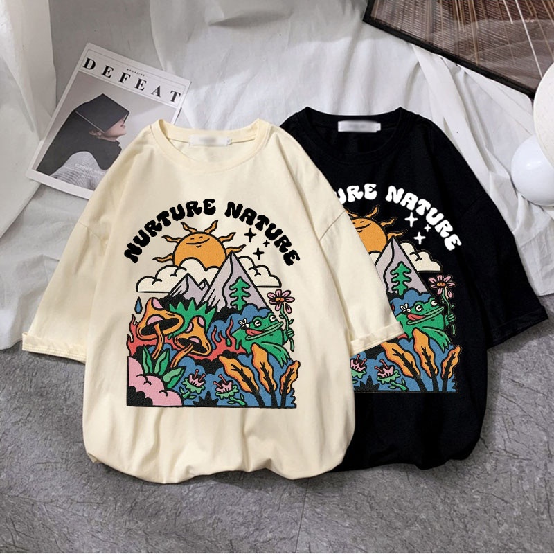 Camiseta Feminina Preta Com Estampa De Cogumelo/Estética/Punk/Gótico/Harajuku/Streetwear/Top Tees