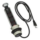 Torre De Tomada Multiplug Retrátil 3500W prata Bivolt com 3 tomadas Inmetro Embutir Mesa bancada