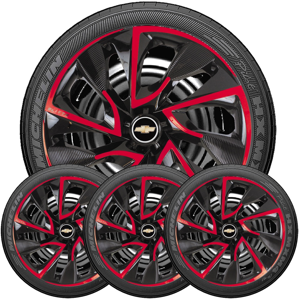 Kit Jogo Conjunto 4 Calotas Aro 13/14/15 Gm Chevrolet Celta Corsa Montana Onix Classic Prisma + Emblema Resinado