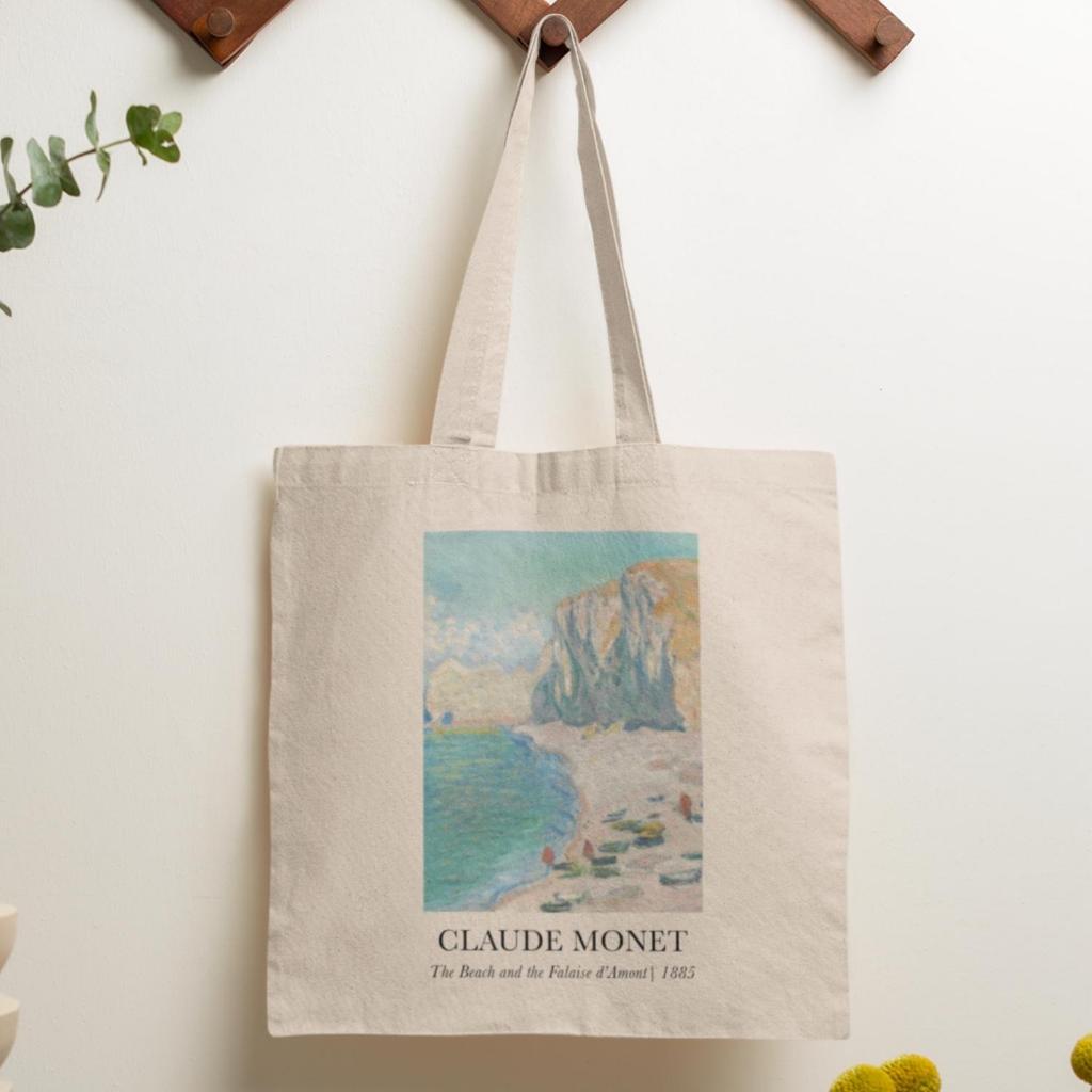 Bolsa Sacola Ecobag Obra de Arte Claude Monet A Praia 1885 Com ou Sem Zíper 100% Algodão Cru 065