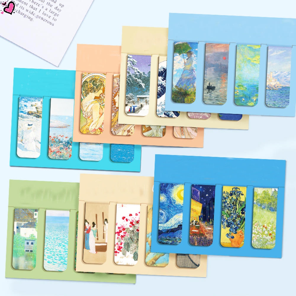 Marcador Magnético Conjunto 4 Pinturas Famosas Mundo Criativo Monet Van Gogh Retro Estilo Literatura E Livro De Arte