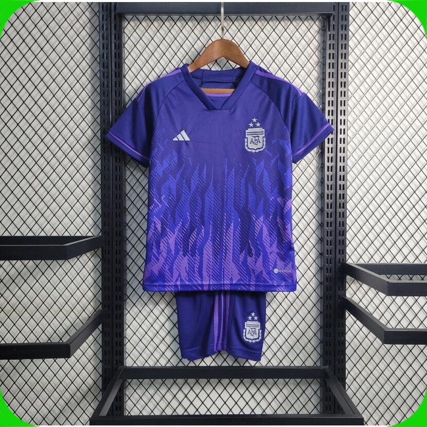 2022 Infantil Conjunto Camisa de Time Argentina Roxa Camiseta de Futebol Criança Uniforme Calções Moletom kit Messi