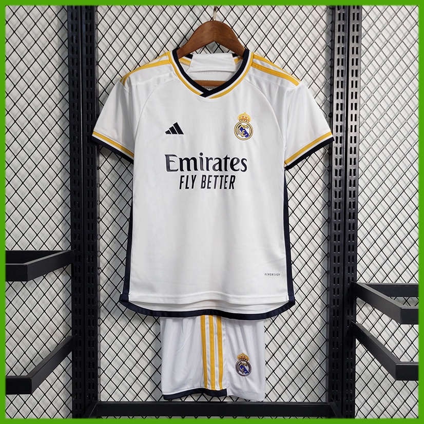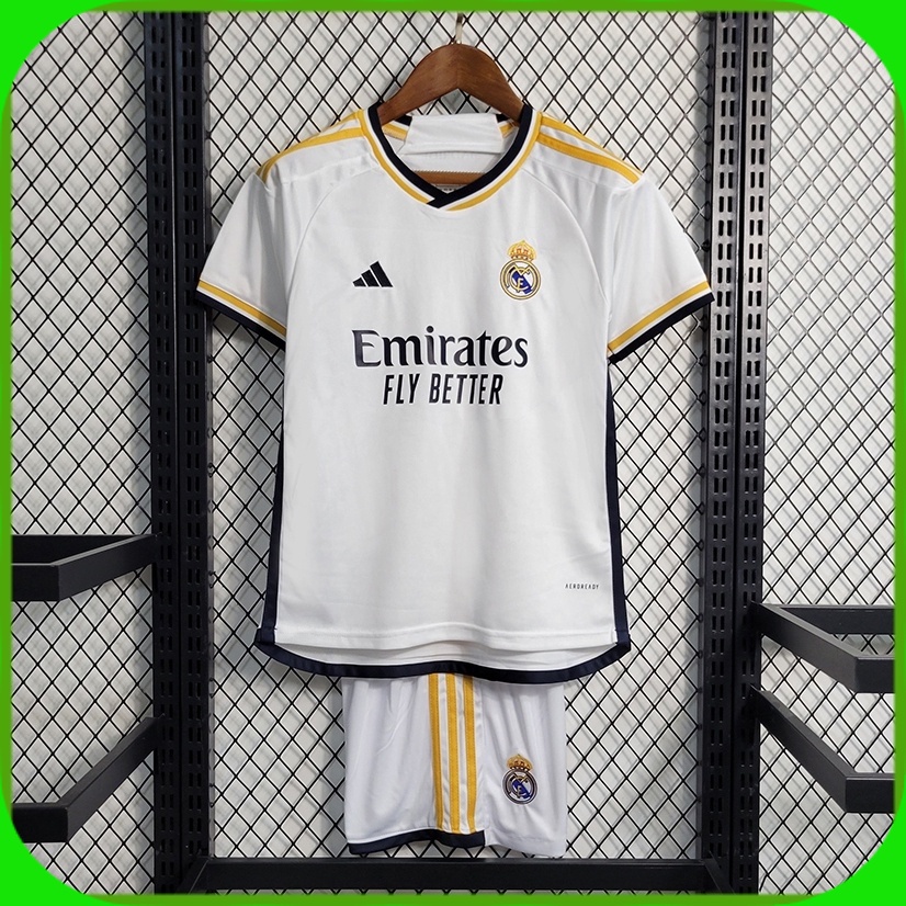 Novo 23/24 Infantil Conjunto Camisa de Time RMD Branca Camiseta de Futebol Criança Uniforme Calções Moletom Kit