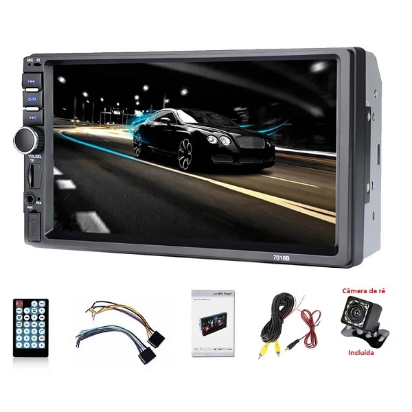 Central Multimídia Com Câmera de Ré 7 Polegadas 2din Espelha o Celular Bluetooth USB 7018b