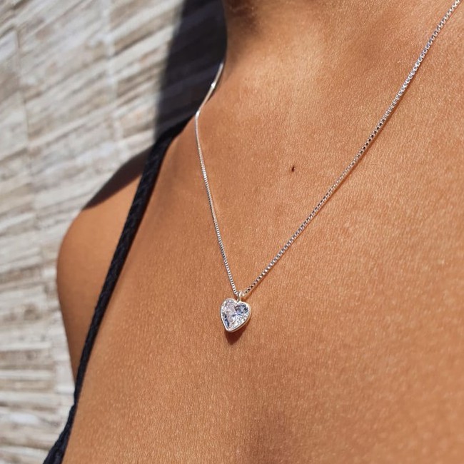 Corrente Colar Feminina Delicada com Pingente Ponto de Luz coração Pedra Zircônia em Prata 925