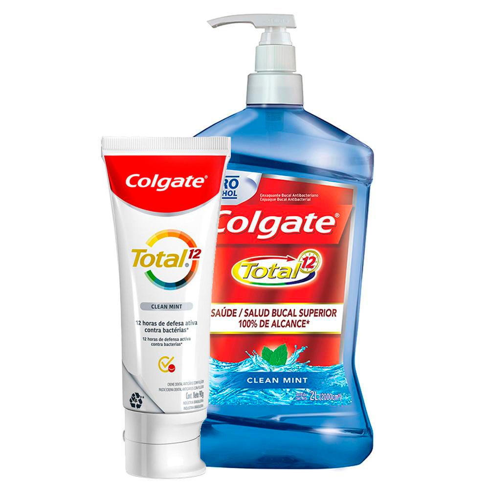 Kit Enxaguante 2L + Creme Dental Colgate Total 12 Clean Mint 90g