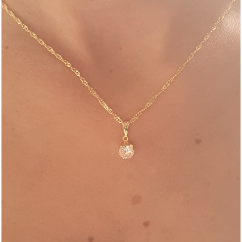 Corrente Folheada Colar Mulher Ouro Pingente de Pedra Branca Ponto de Luz