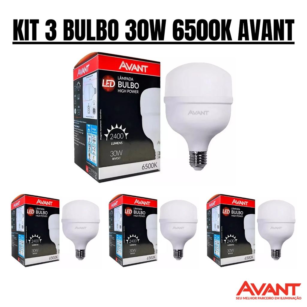 KIT 3 Lâmpada Bulbo Led 30w Bivolt 6500K E27 - AVANT