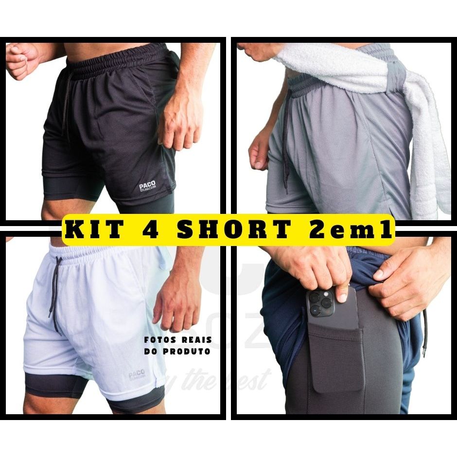 Kit Com 4 Shorts 2 Em 1 Masculino Academia Treino Com Bolso Interno Para Celular