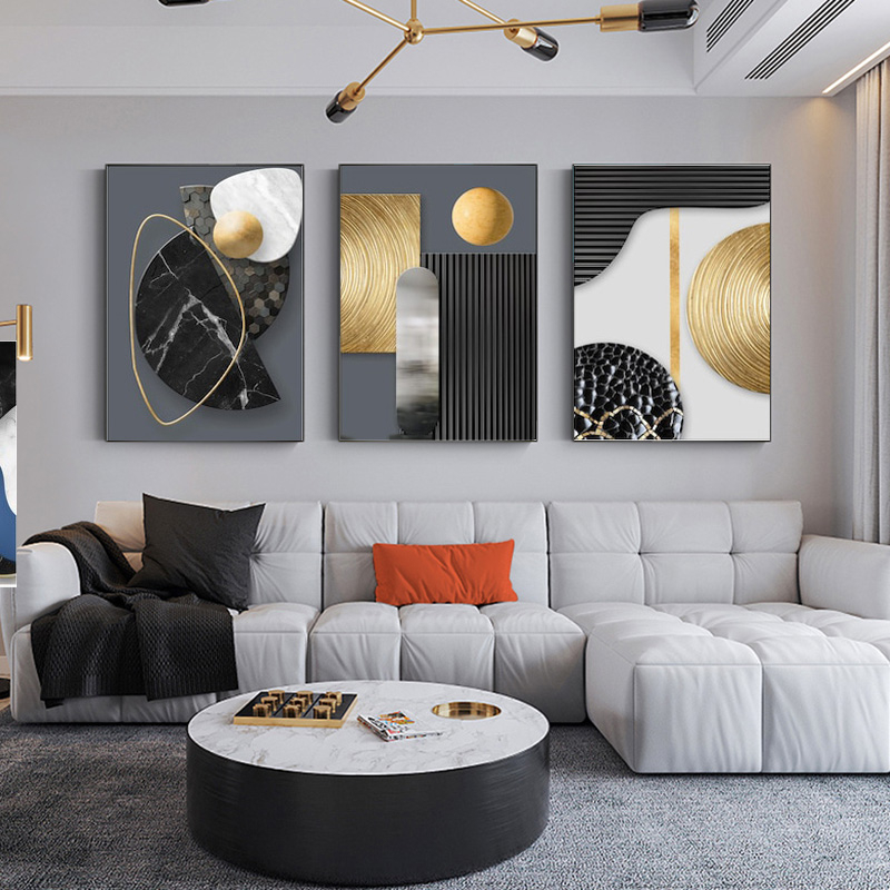 Quadro decorativo 3 peças 40x60 Nórdico de luxo ouro geométrico dourado moderno decoração para casa sala quarto hall interiores