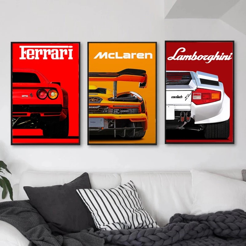 quadro decorativo 3 peças carros luxo velocidade decoração