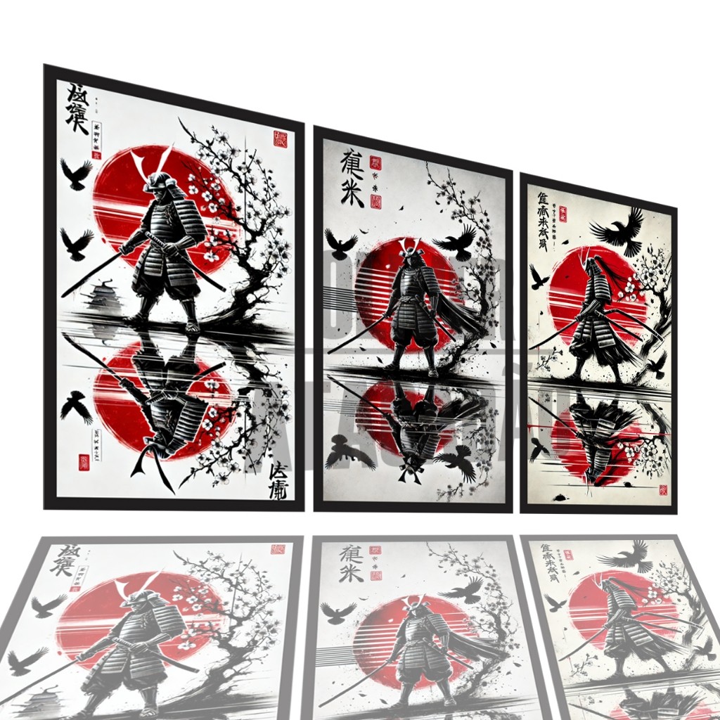 Quadro Decorativo Samurai Colors Alta Qualidade 3 Peças 120x60cm Luxo Ideal para Sala e Quarto