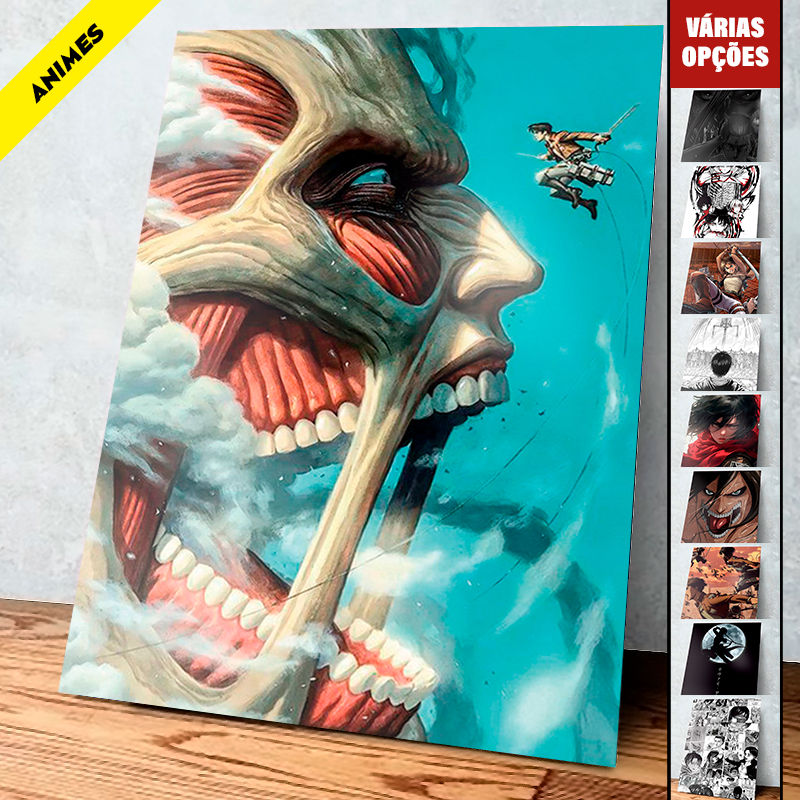 ATTACK ON TITAN - Quadros e Placa Decorativa de Parede para quarto e sala tema Eren Yeager Armin Levi Shingeki No Kyojin Titã Mikasa Manga mosaico poster Quadro parede e decoração séries, filmes e animes Nerd Geek kit combo presente Nova Edição hq 45