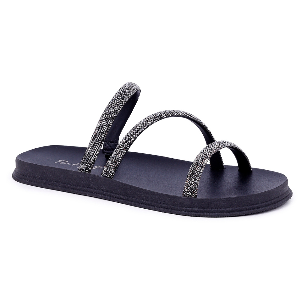 Sandália feminina rasteira Papete Birken Calce Fácil Dedinho Tiras de Strass Brilhante com regulador 2 formas de uso.