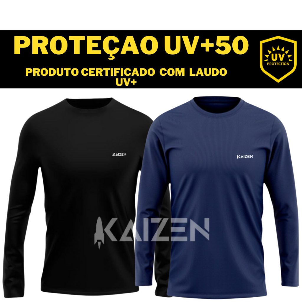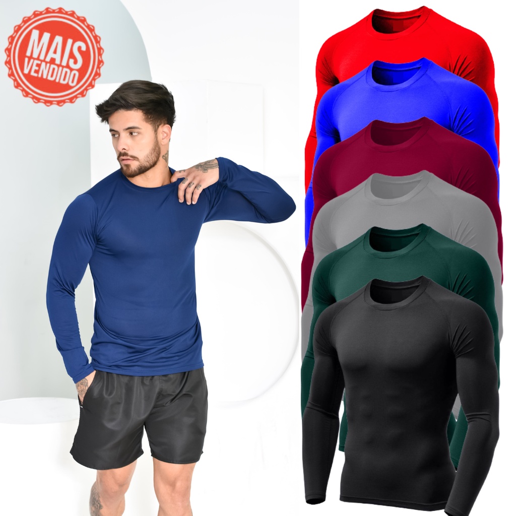 KIT 2 CAMISETA COM PROTEÇÃO SOLAR UV 50+ CAMISA TÉRMICA MANGA LONGA MASCULINA BLUSA SEGUNDA PELE