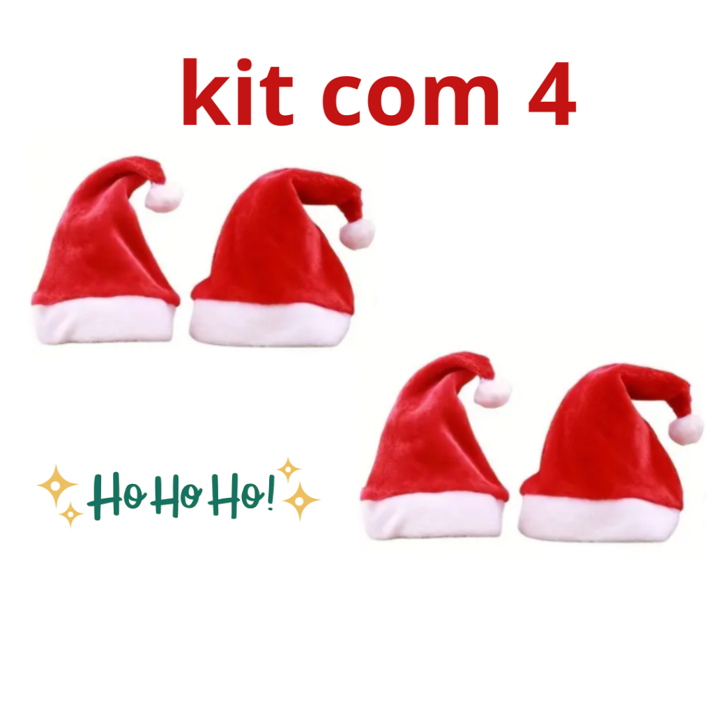 Kit 4 Gorro Touca De Papai Noel Mamãe Noel Natal LUXO