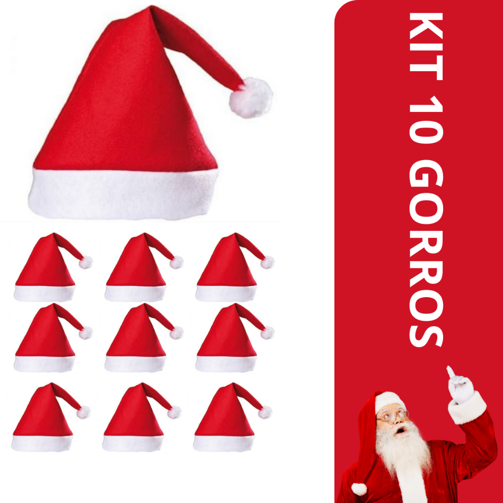 Kit 10 Gorro de Natal Touca Papai Noel Tradicional Vermelho