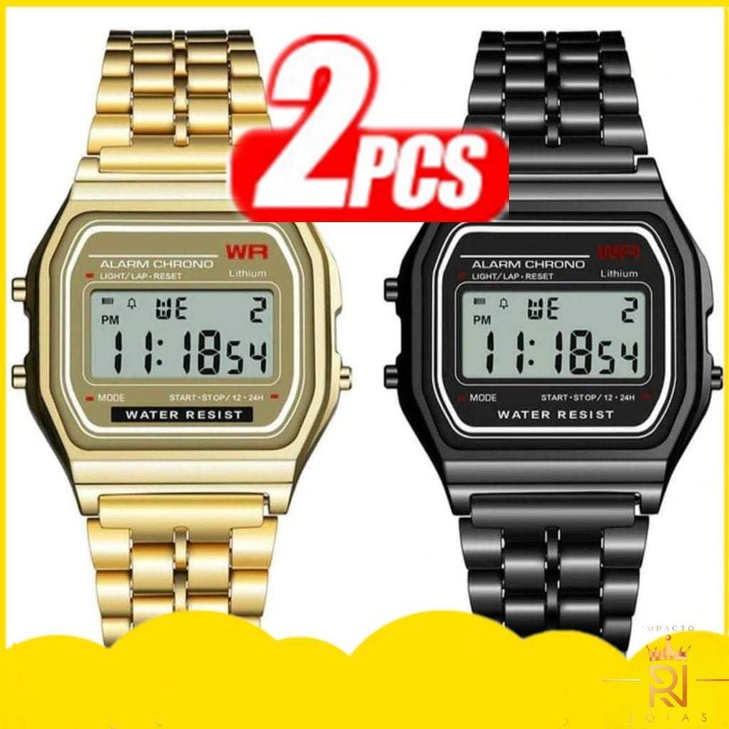 KIT 2PCS CÁSSIO RELÓGIO RETRÔ WR DIGITAL LED UNISSEX ELETRONIC VINTAGE para Masculino e feminino