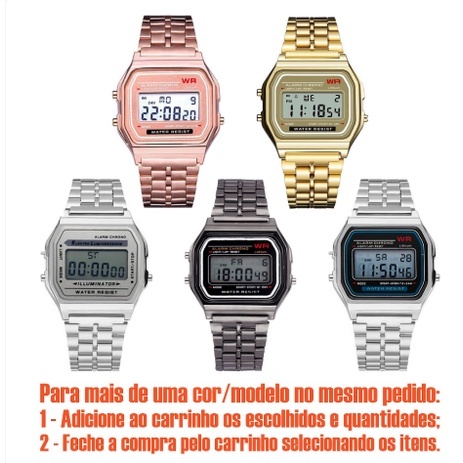 KIT COM 5 RELÓGIO RETRÔ WR DIGITAL LED UNISSEX ELETRONIC VINTAGE para Masculino e feminino