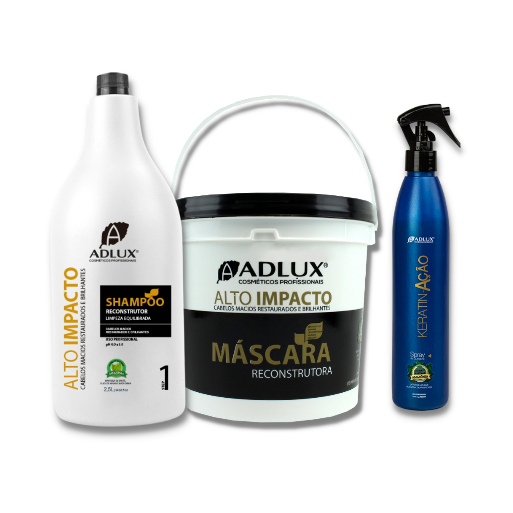 Kit Reconstrutor Hídrico e Lipídico Alto Impacto Profissional 2,5l + Fortalizador Capilar KeratinAção 300ml Repositor de Queratina Adluz
