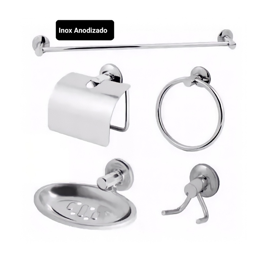( SUPER OFERTA ) Kit Acessórios Para Banheiro 5 peças Stander ou Light Aço Inox 5 Anos de Garantia Promoção