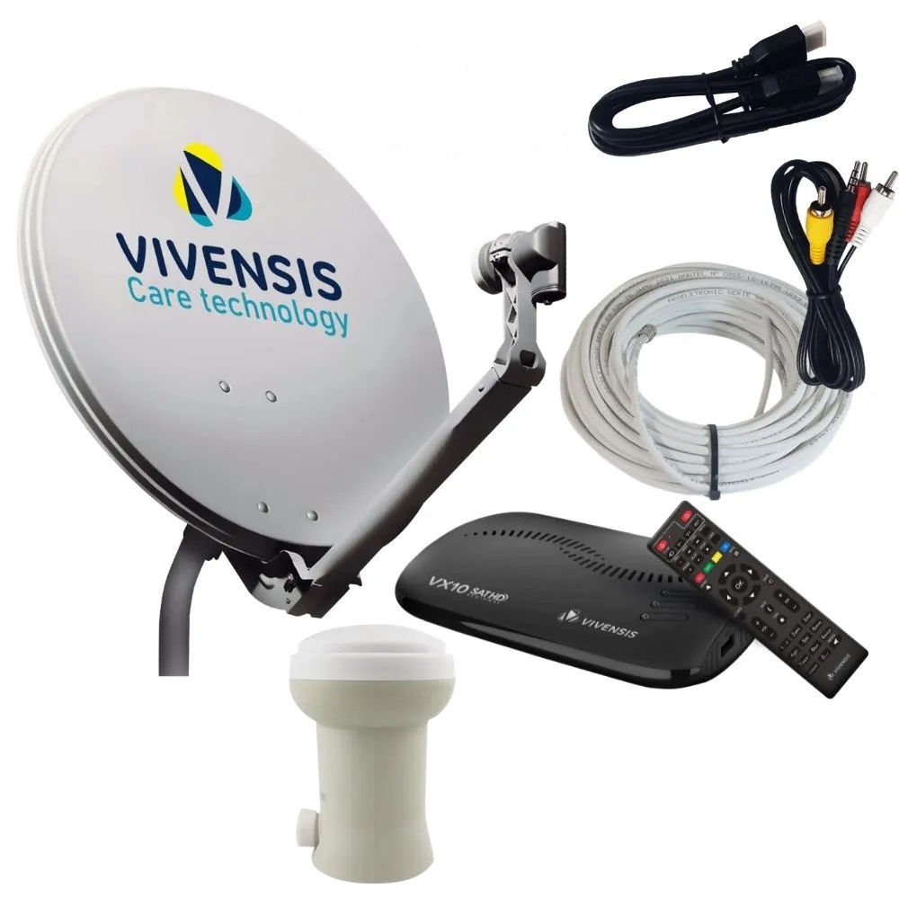 Antena parabolica vivensis 60cm banda ku com receptor vivensis digital hd vx10 (kit completo)