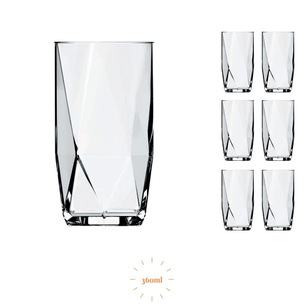 Jogo 6 Copos Chiques 360ml Topázio Drinks Vidro Agua e Suco