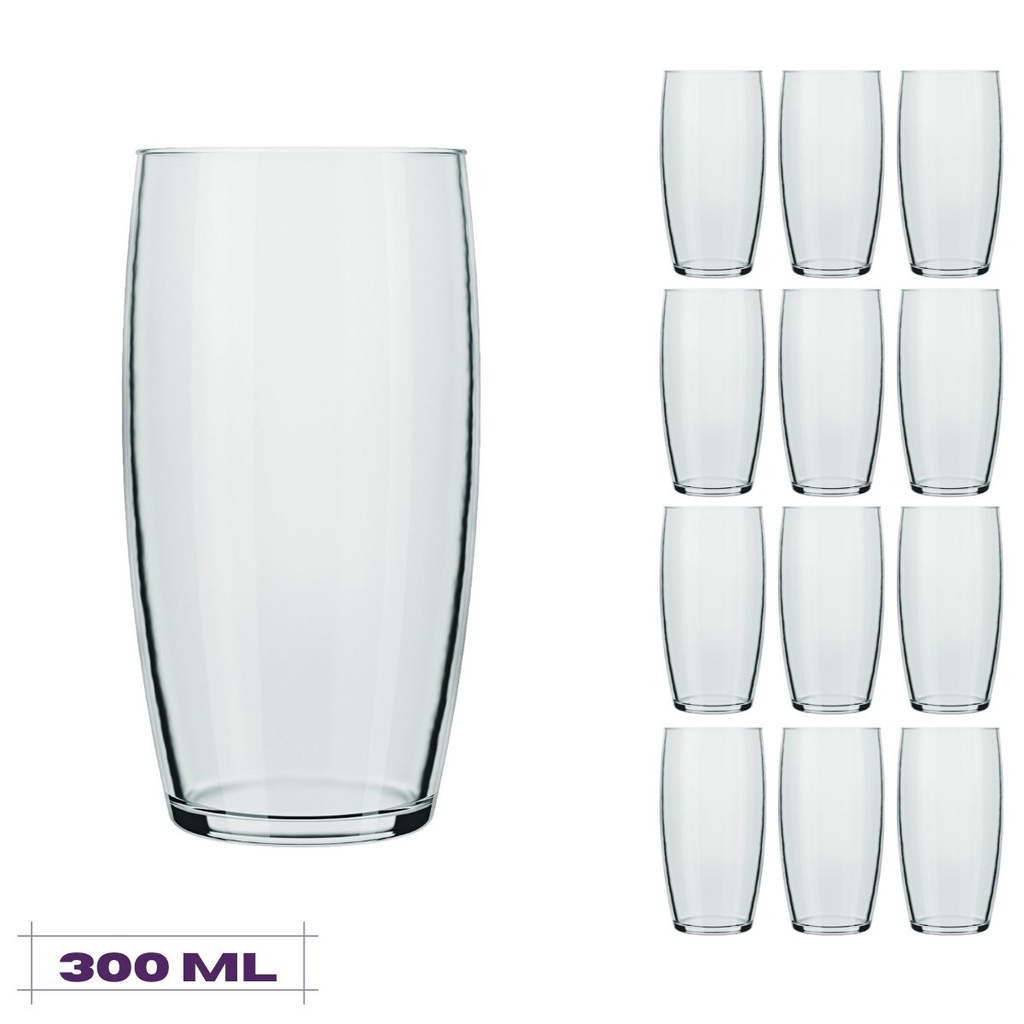Jogo 12 Copos Chiques 300ml Oca Drinks Vidro Mesa Posta