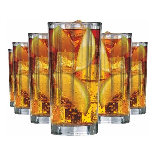Jogo de copos de Vidro 300ml 6 Peças Nadir Light Long Drinks Multiuso para Sucos Água Refrigerante Leite Copa Jantar Almoço Cozinha Festa Bar Praia Churrasco Restaurante