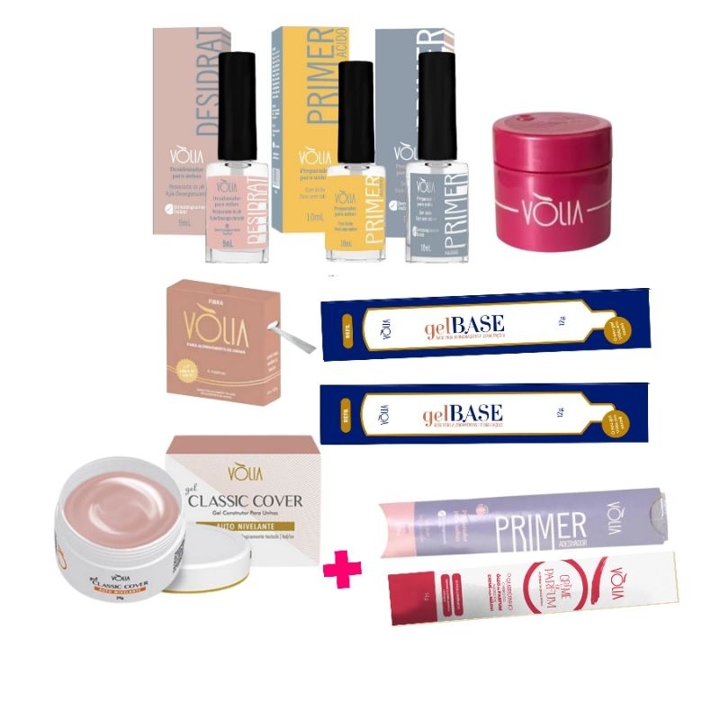 Kit Volia Completo para alongamento de Unhas Preparadores Vólia Desidrat + Primer Ácido + Primer + Gel Base + Gel Cover Postagem imediata