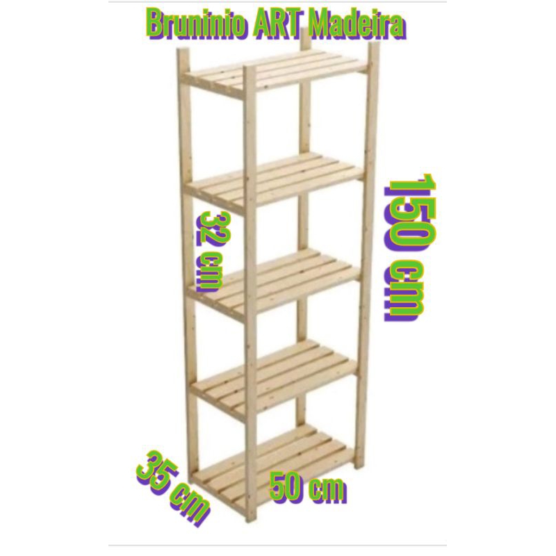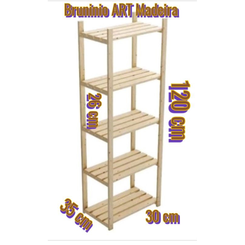 Estante 1 Metro Madeira Pinus 5 Prateleiras Multiuso Rack Organizador Sapateira.