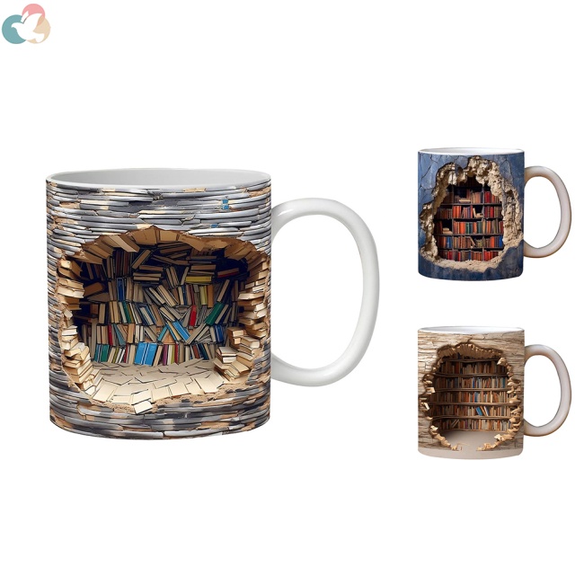 Autêntico100 % ! Caneca De Café Em Cerâmica 3D Prateleira Com Alça Para O Natal De Halloween Do Amante De Livros