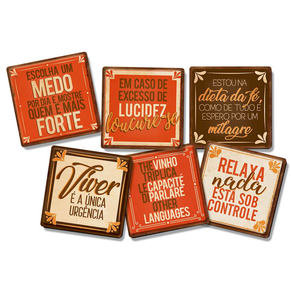 Porta Copos, Descanso de Copos - Kit com 6 Peças - Frases