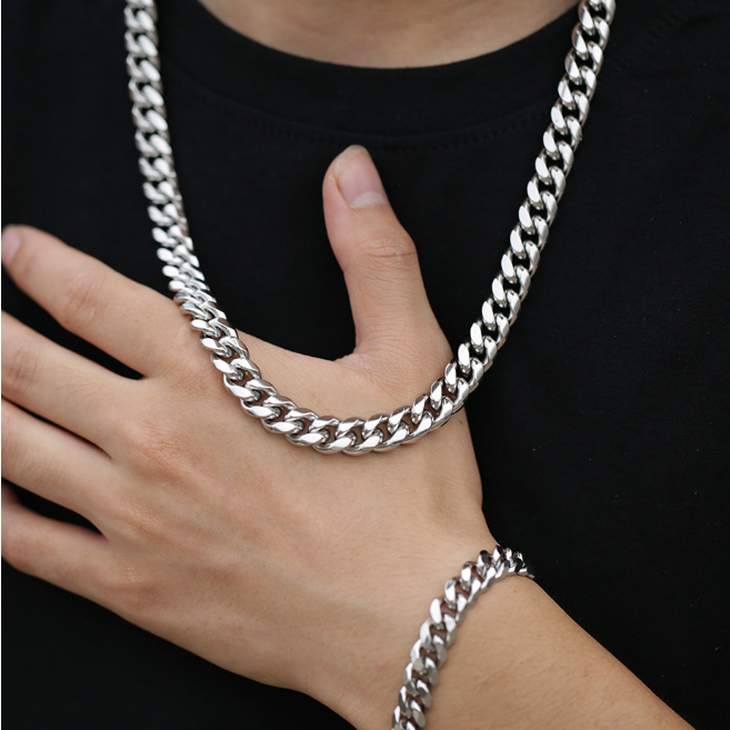 Kit Conjunto Corrente + pulseira cordão Masculino 60cm 1×1 Aço Inox Prateado