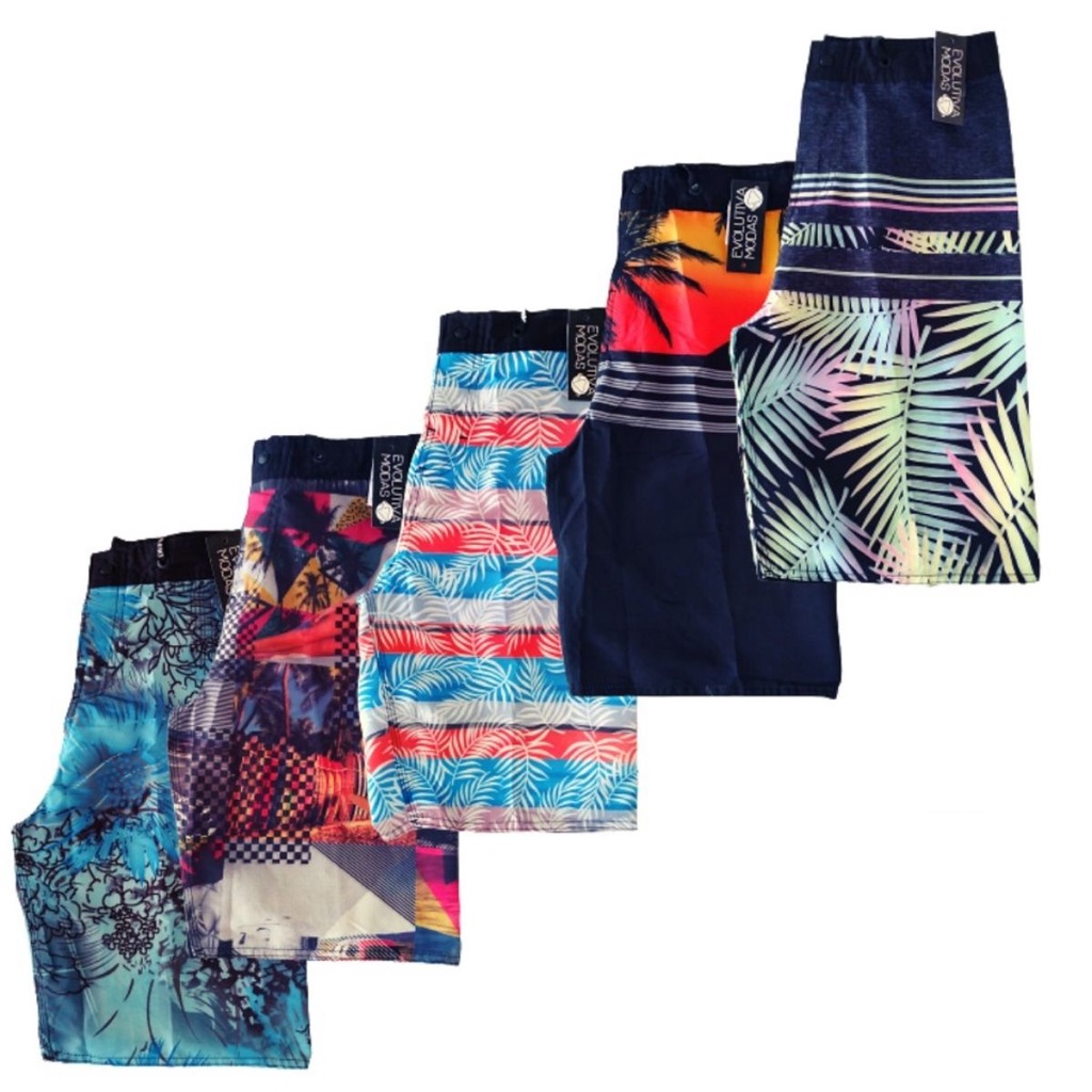 Kit Com 05 Bermuda Tactel Masculina Estampada Adulto Surf Praia