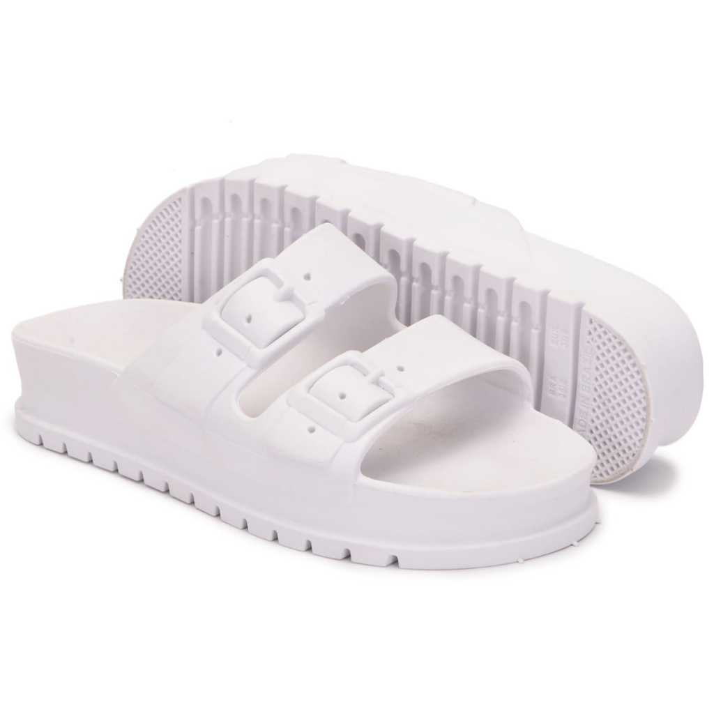 Papete Feminina Casual Moleca Confortável Glitter Tamanco Flatform Slide Flats Branco/Nude/Preto