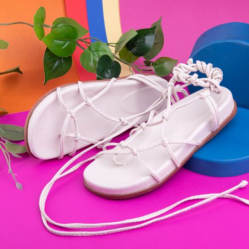 Sandália Feminina de Amarração Papete Flatform Tiras de Amarrar na Perna Strass Ref. 30/19